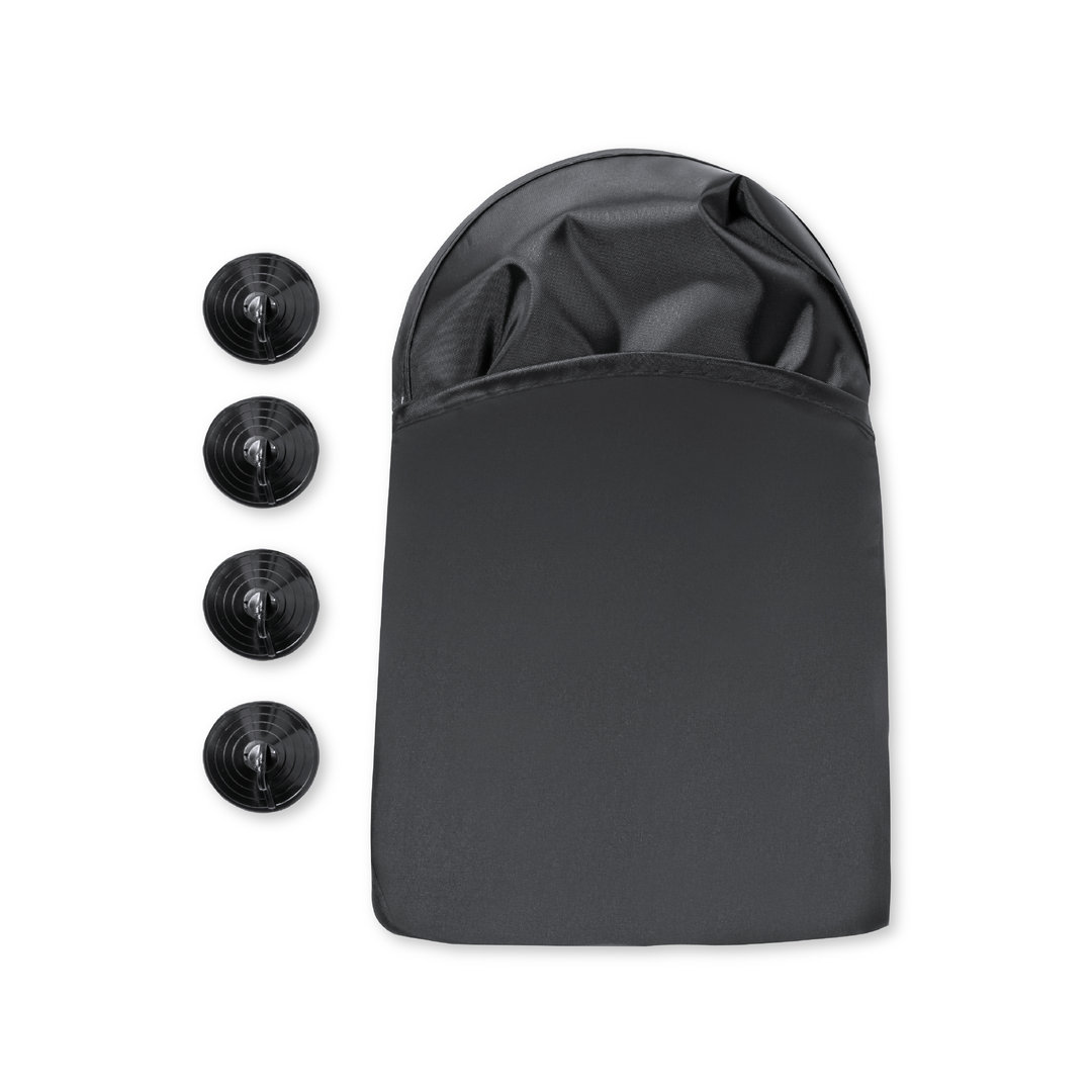 Original set de 2 parasoles plegables para ventanilla, fabricados en resistente poliéster. Ligeros y en medidas 44 x 36 cm cada uno, con ribetes reforzados y fijación por ventosas (4 unidades incluidas). Con sencillo sistema de plegado y funda individual a juego. Color blanco especial para sublimación. 2 Piezas. Plegable. Funda Poliester Poliéster