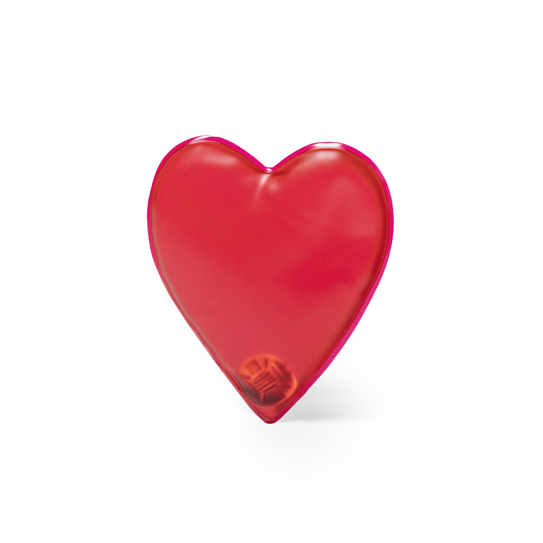 Parche térmico con diseño corazón. Reutilizable y con efecto calor de duración prolongada. Se activa doblando la chapa metálica para que el parche se endurezca y se caliente. Para reutilizar, se calienta agua en un recipiente con el parche dentro hasta que el gel interior vuelva a su estado líquido, presionando la chapa metálica de nuevo. Disponible manual de instrucciones en español e inglés.   Reutilizable