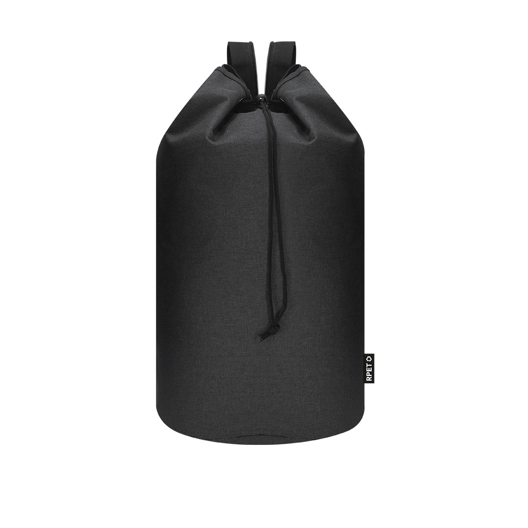 Petate multiusos de gran capacidad en resistente poliéster RPET 600D. Cierre superior de cuerda con accesorio de ajuste y argollas metálicas reforzadas. Cinta de hombros trasera 2 en 1 con cierre de cremallera para transporte en un solo hombro o en los dos. Con distintivo de RPET en etiqueta.El material RPET se elabora a partir de plástico reciclado, para así fomentar la reutilización de residuos plásticos y ayudar a la sostenibilidad del planeta. Cinta 2 en 1 con Cremallera Poliéster 600D RPET