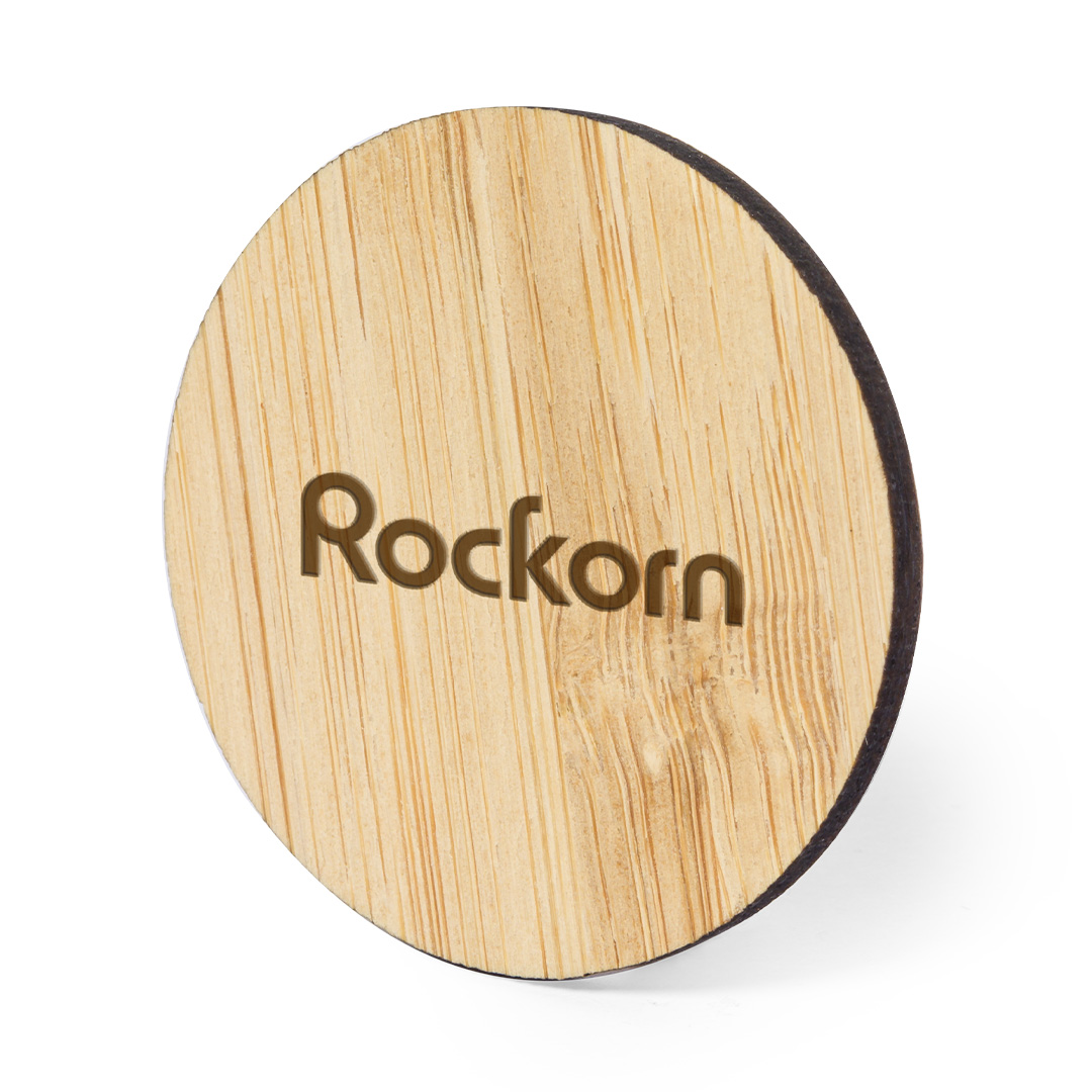 Pin de línea nature, hecho en bambú procedente de cortes naturales. De fabricación europea y disponible en diseños circular y cuadrado, con pin magnético. Magnético Bambú