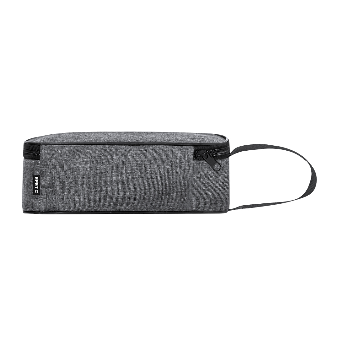 Portabocadillos térmico exterior fabricado en RPET 600D e interior isotermo en aluminio. Con cierre de cremallera y asa de transporte. Distintivo de RPET en etiqueta. El material RPET se elabora a partir de plástico reciclado, para así fomentar la reutilización de residuos plásticos y ayudar a la sostenibilidad del planeta. Poliéster 600D RPET/ Aluminio