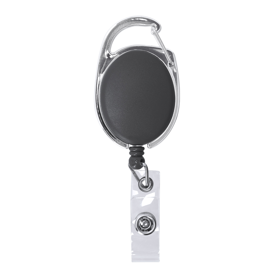 Porta acreditaciones extensible de sobrio diseño, con accesorio de cierre de botón para colgar la acreditación y con mecanismo extensible de hasta 75 cm. Con mosquetón de enganche metálico y amplia superficie de marcaje Extensible. Clip Incluido
