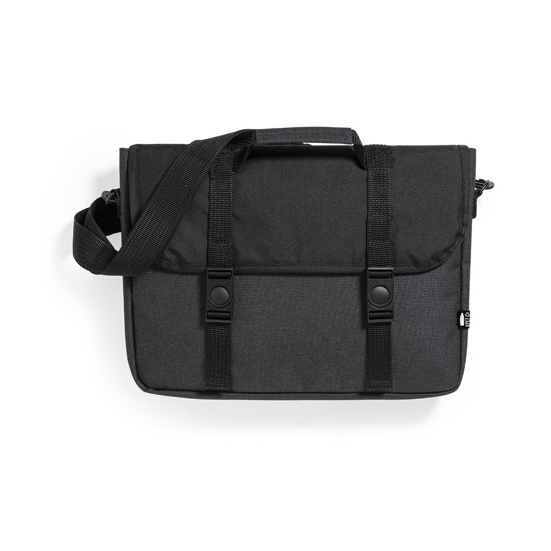 Portadocumentos de línea nature y en resistente poliéster 600D RPET reciclado y libre de PVC, fruto de la combinación del proceso de reciclaje de materiales plásticos junto con la técnica milenaria de fabricación del fieltro, dando como resultado un material de eco-tendencia de origen reciclado. Con acolchado y bolsillo principal con tiras de cierre de hebilla bolsillo interior de cierre de cremallera y cinta bandolera ajustable para hombro. Con asa de transporte reforzada y accesorio en parte posterior para ajuste en barra de trollley. Resistencia hasta 7kg, con distintivo RPET en etiqueta exterior. Acolchado Poliéster 600D RPET