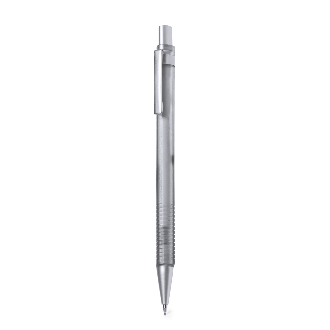 Elegante portaminas hecho en resistente ABS. Cuerpo en color gris translúcido y empuñadura a juego de tacto rugoso para un mejor agarre, con elementos cromados como botón, clip y punta. Con goma y minas incluidas de 0,7 mm. Minas 0,7 mm Incluidas