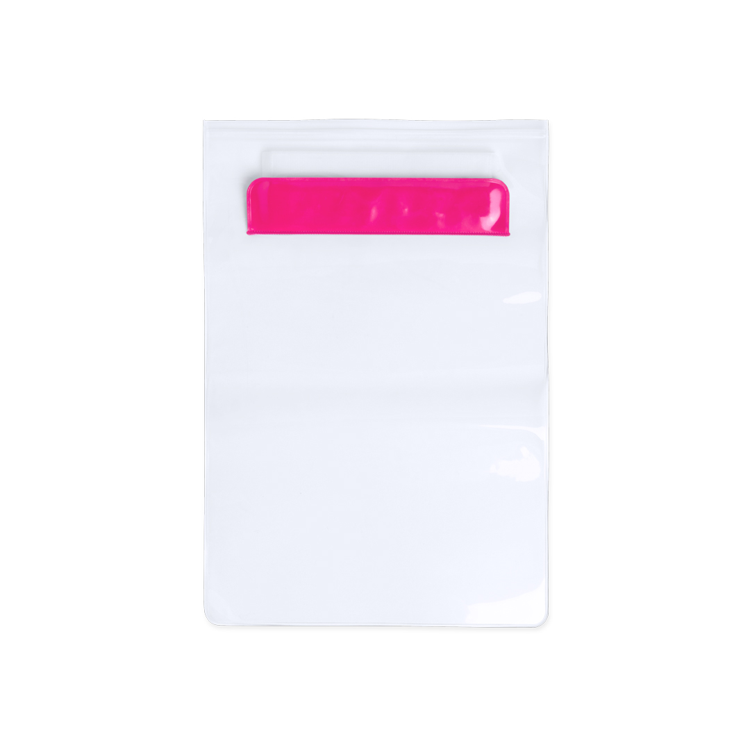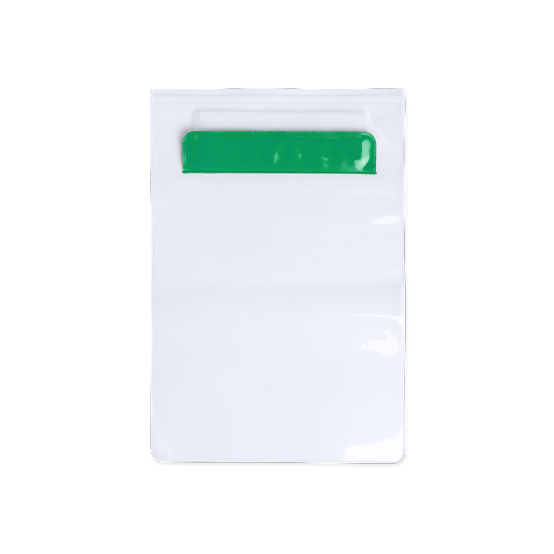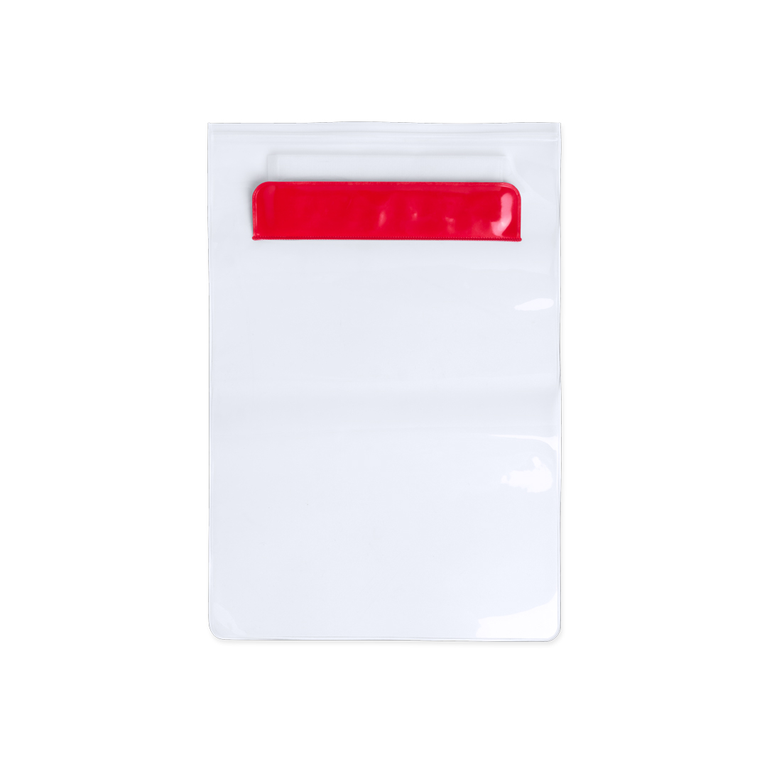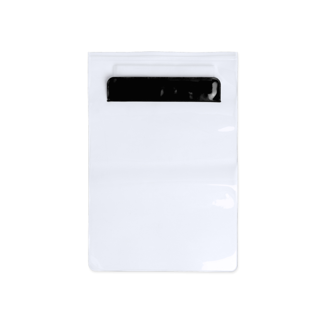 Práctico portatodo impermeable en PVC con función táctil, diseñado especialmente para tablets de hasta 9,7 pulgadas y doble sistema de seguridad para preservar la estanqueidad. Con solapa frontal en variada gama de colores. Impermeable. Pantalla Táctil PVC