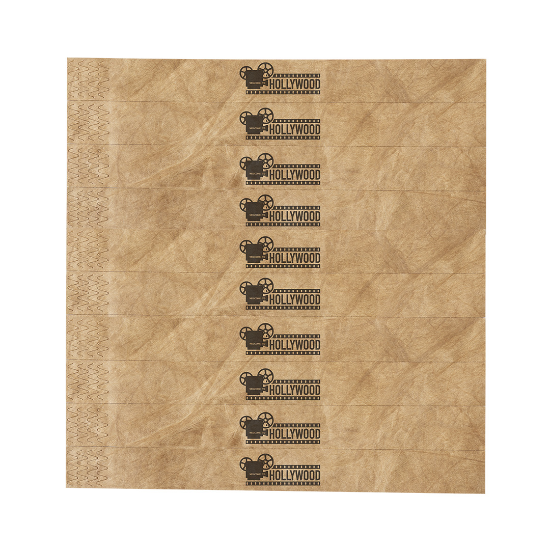 Pulsera para eventos de acabado nature. Fabricada en fibra sintética Tyvek, que destaca especialmente por su resistencia, flexibilidad, durabilidad y facilidad para la impresión. Con cierre adhesivo, talla única para adulto. Resistente al agua. Presentada en plancha troquelada de 10 piezas con numeración individual. Talla Única. Adulto. Cierre Seguridad Tyvek® Material