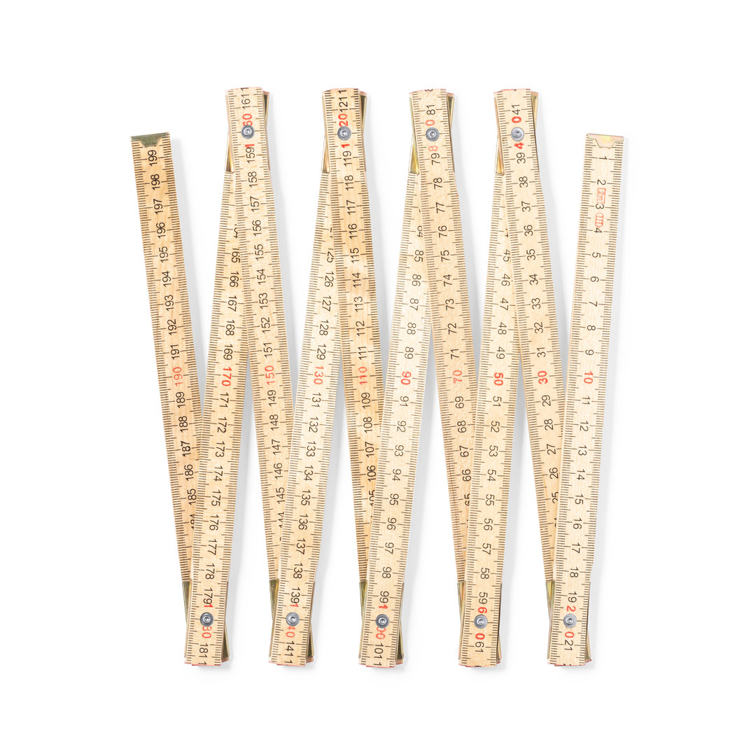 Clásica regla de carpintero fabricada en madera natural. Plegabe, con 10 segmentos y de 2 m de longitud. 2 M. Plegable Madera