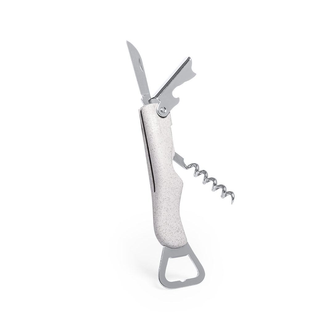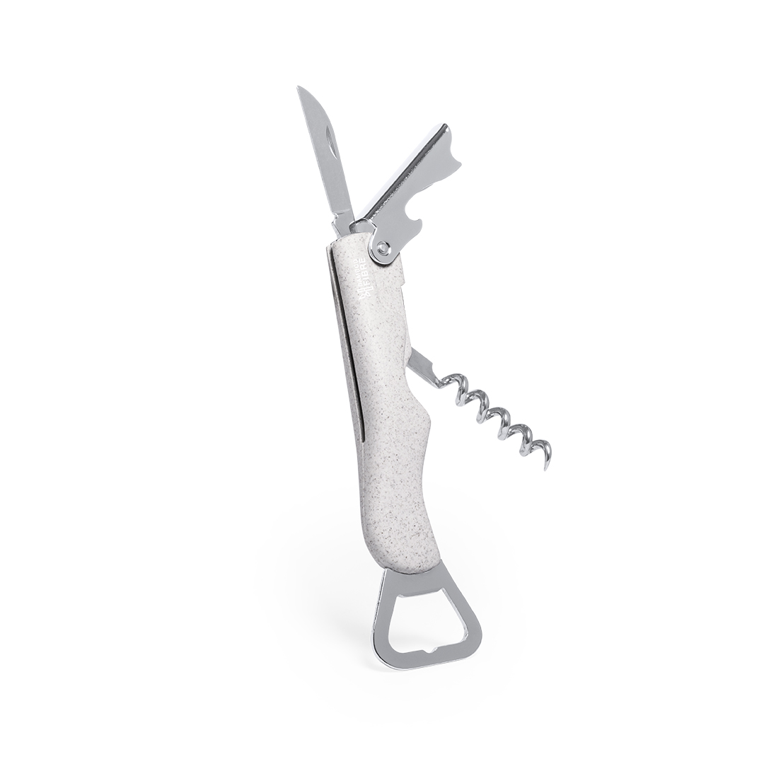 Sacacorchos de línea nature con abridor de botellas y cortacápsulas. Fabricado en fibra de bambú y ABS, con accesorios en acero inox. Presentado en atractiva caja individual de diseño eco. Fibra de Bambú/ ABS