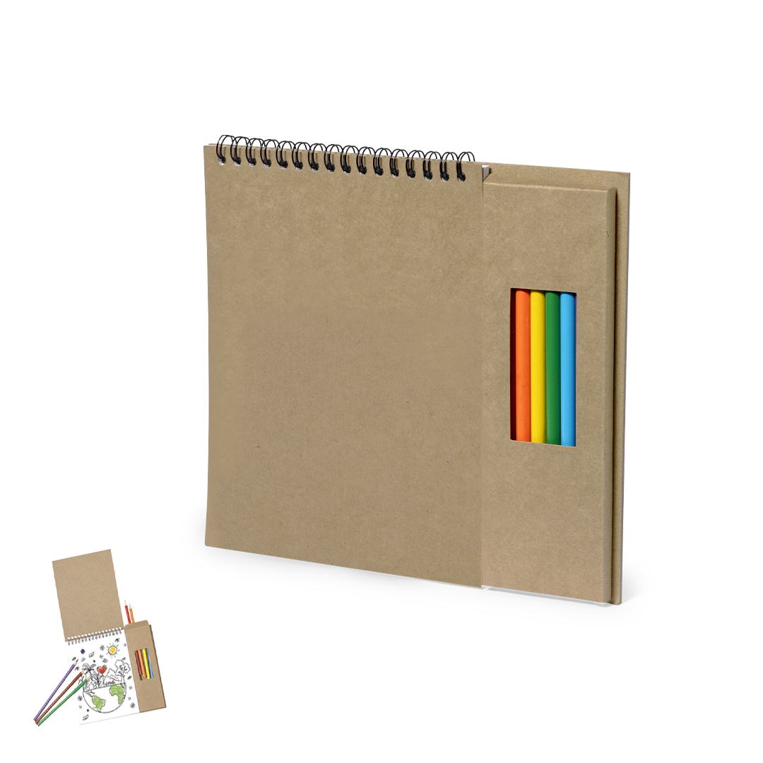Fantástico set de lápices y bloc hecho en cartón reciclado. Contiene estuche con ventana de 8 lápices con cuerpo hexagonal de variados colores y un bloc de notas de anillas con 6 hojas de motivos naturales y 18 páginas en blanco. 8 Lápices. Bloc 24 Hojas Cartón Reciclado