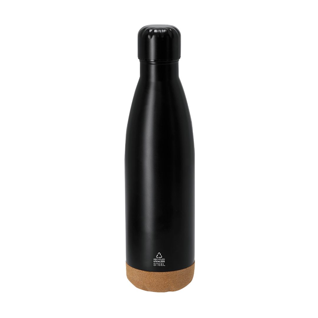 Set de bloc de notas, bolígrafo y bidón térmico . Incluye:- Bloc de notas de tapas rígidas, de corcho y poliéster 300D RPET, marcapáginas de tela y elástico de sujeción a juego. 80 hojas interiores a rayas. – Bolígrafo con cuerpo recubierto en corcho y aluminio. Elegante clip y accesorios a juego, de mecanismo pulsador y en tinta azul. – Bidón térmico de Acero Inox Reciclado con capacidad de 500ml, con diseño de base en corcho. Tapón a rosca. Con distintivo logotipo de Acero Inox Reciclado. Bidón Térmico Acero Inox Reciclado/ Corcho, 500 ml. Bloc Poliéster 300D RPET/ Corcho, Portada Rígida, 80 Hojas. Bolígrafo Aluminio Reciclado/ Corcho