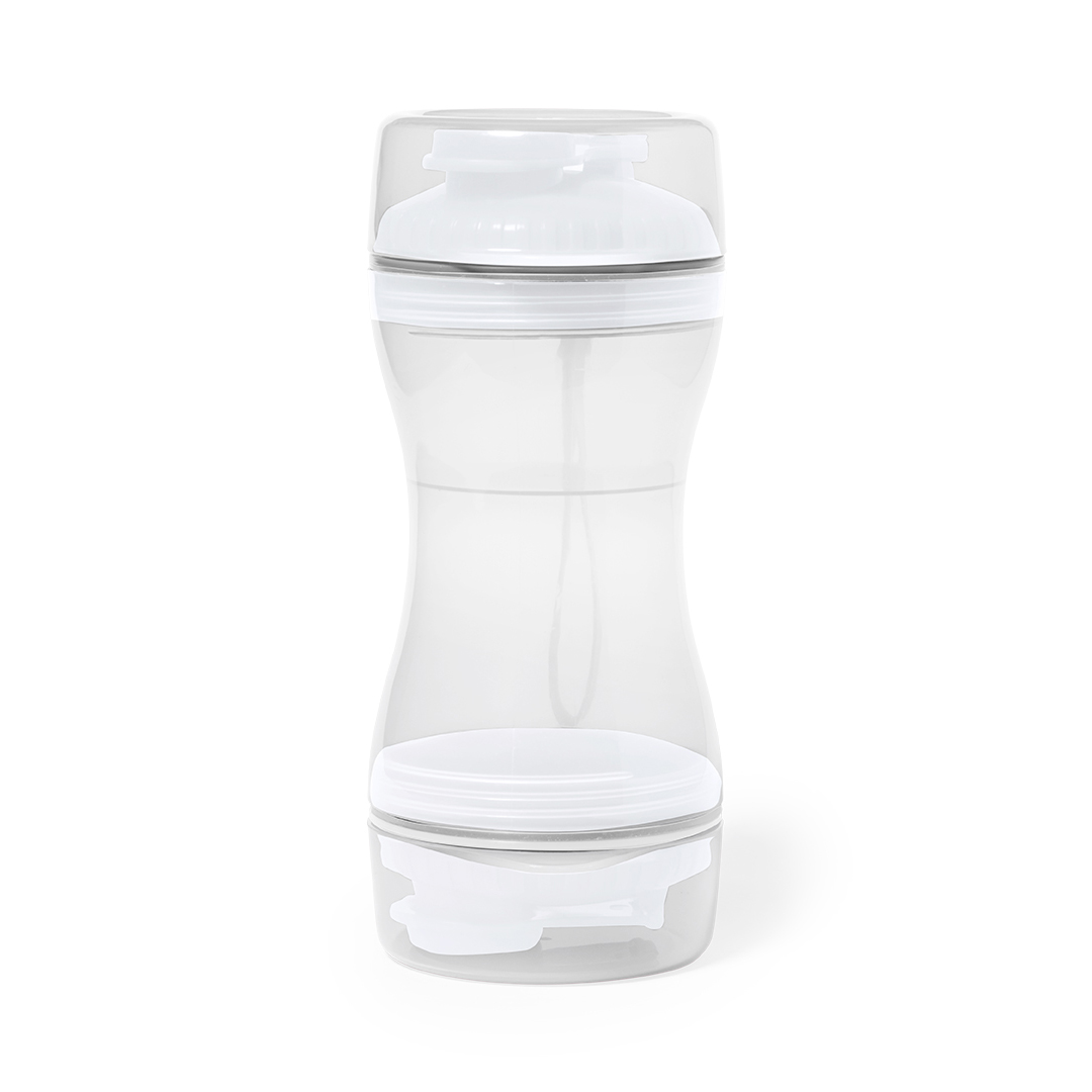 Práctico set de mascotas fabricado en resistente ABS. Con dos compartimentos separados de 330 ml y 280 ml, con tapón de rosca para mayor seguridad y dosificadores incluidos. Además, cuenta con dos tapaderas para usar como cuenco. Presentado individualmente en caja de diseño kraft. 2 Compartimentos 330 ml y 280 ml ABS