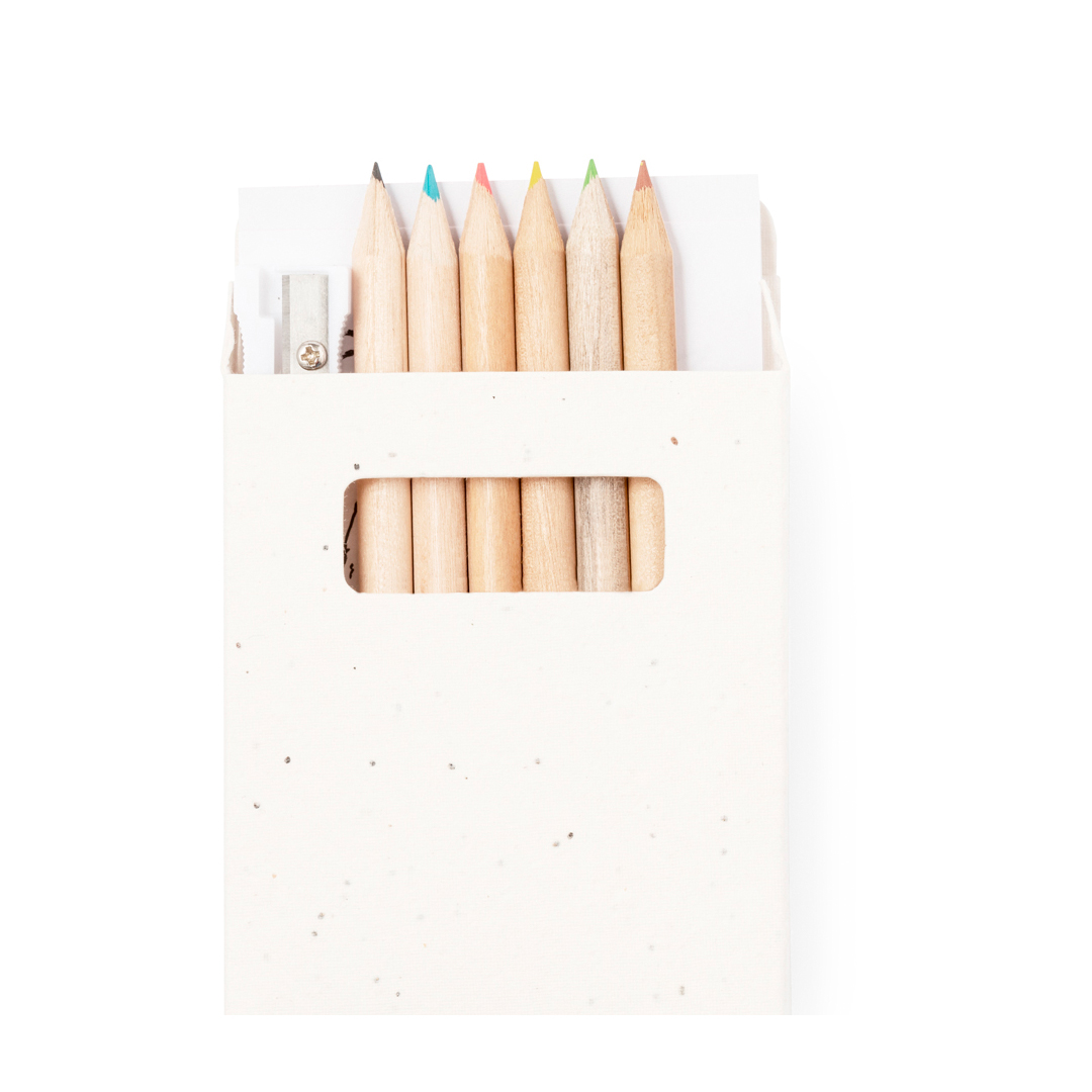 Set de 6 lápices con plantillas para colorear y sacapuntas, presentado en caja de cartón natural con semillas. Lápices de madera con cuerpo redondo de acabado natural y minas en variada gama de colores. Incluye semillas de petunia en la caja, convirtiéndolo así en cartón plantable al final de su vida útil. Flores en colores surtidos, con instrucciones de plantado en la cubierta trasera. 8 Piezas. Bloc 20 Hojas. Semillas de Petunia Incluidas. Flores Colores Surtidos Papel Semilla