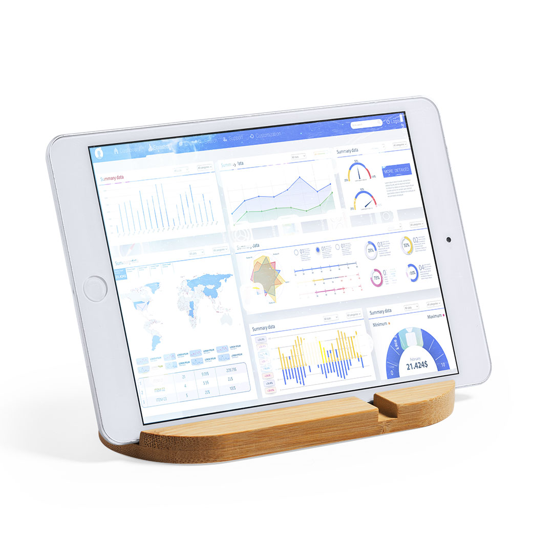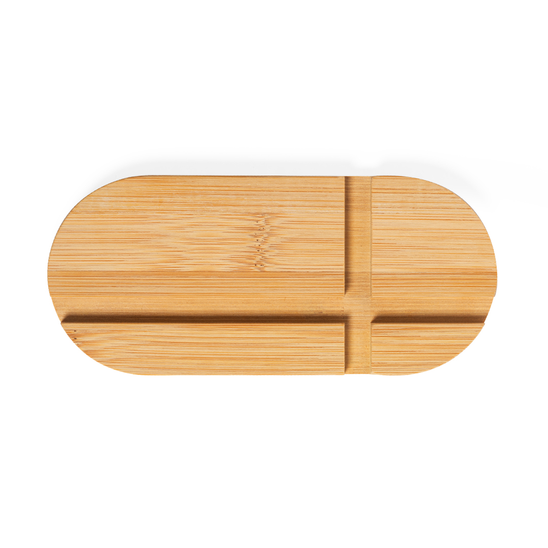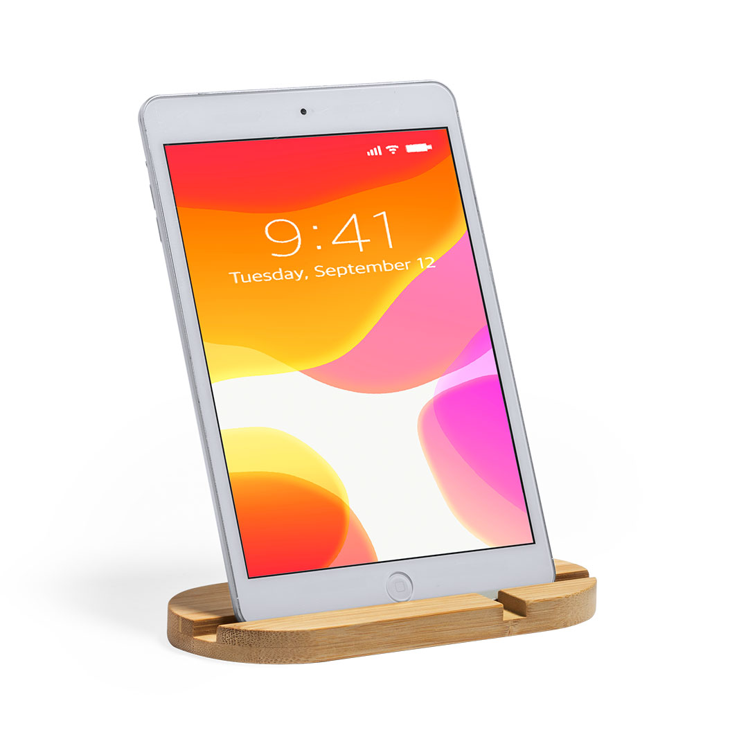 Original y sencillo soporte de línea nature para smartphone y tablet. Fabricado en bambú procedente de cortes naturales. Presentado en atractiva caja individual de diseño eco. Bambú