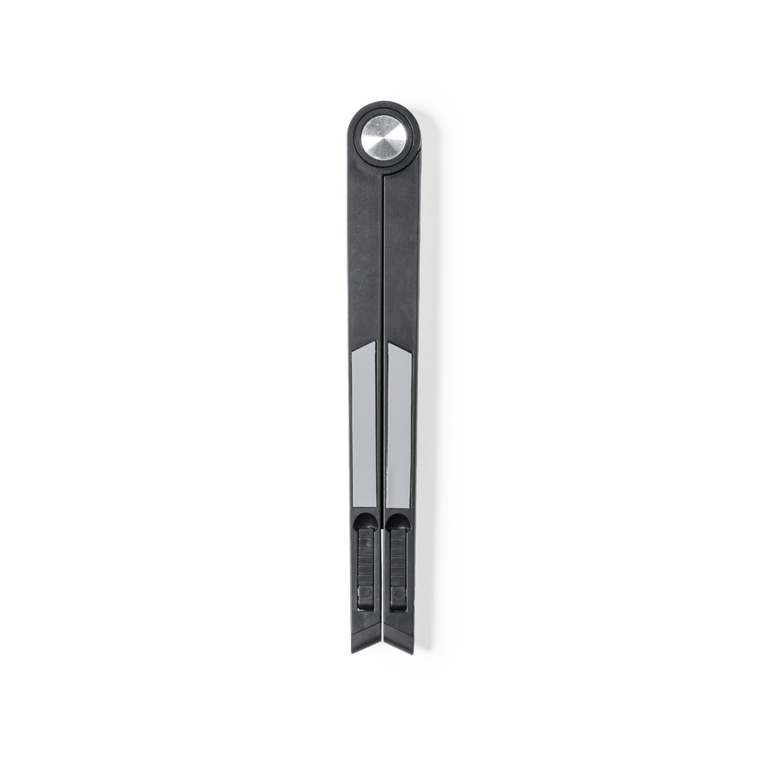 Original soporte plegable para dispositivos móviles y ordenador portátil de hasta 13″, fabricado en resistente material ABS. Con dos posiciones de visionado y plegado de pequeño tamaño para un fácil transporte. Plegable. 2 Posiciones ABS