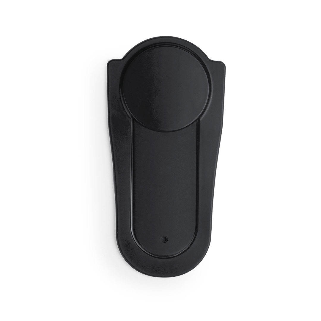 Soporte de suave silicona para dispositivo móvil. Original diseño en llamativos colores y sistema de fijación mediante ventosa, mecanismo desplegable y presentado en atractiva bolsa de diseño. Adhesivo Silicona