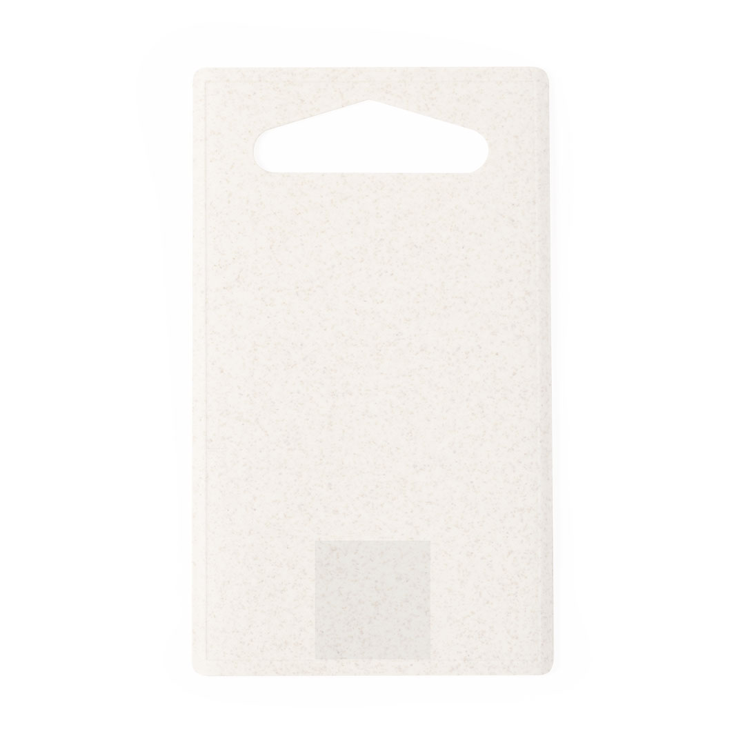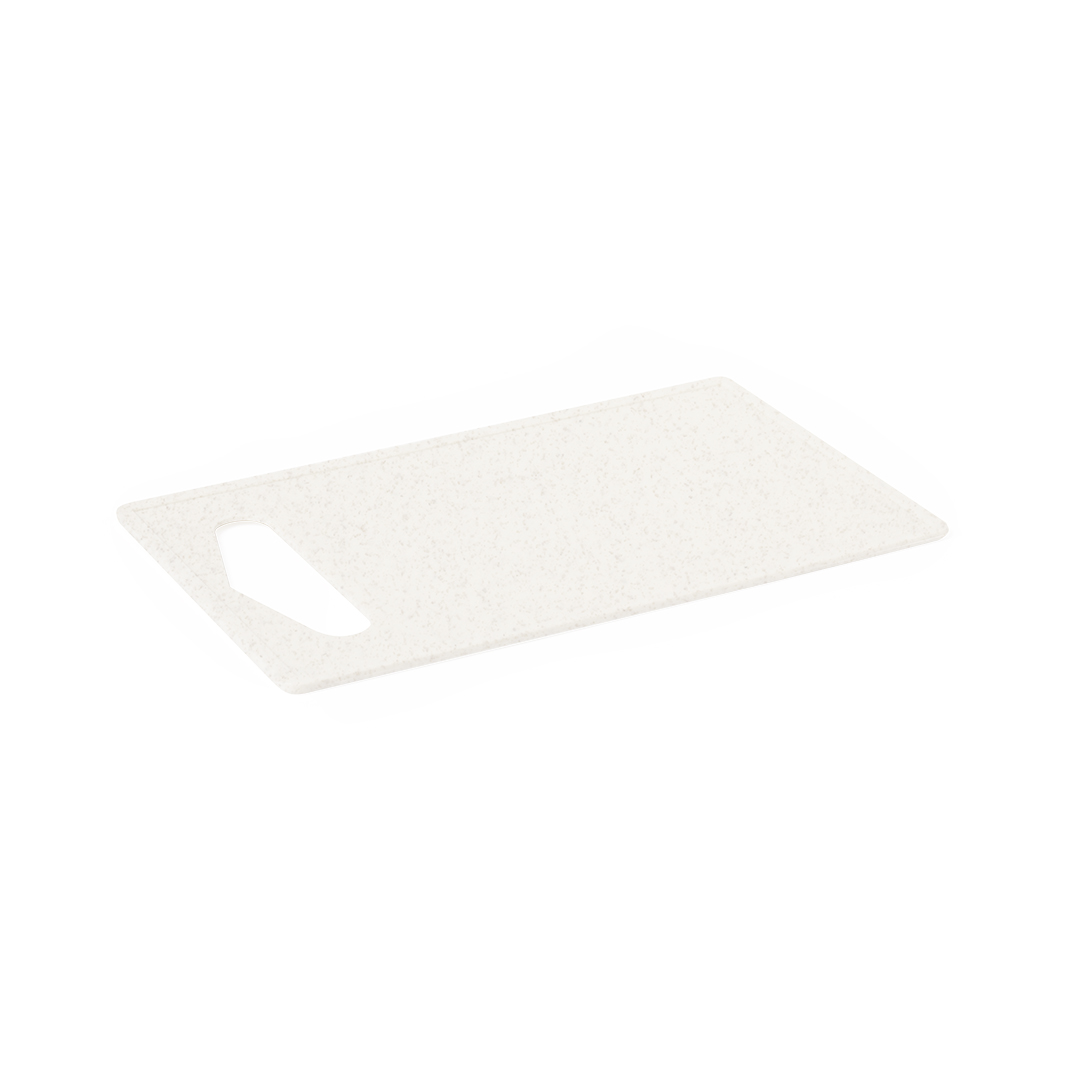 Tabla de cocina para cortar fabricada en PP. Con asa para un firme agarre, fácil de limpiar y guardar. Presentada individualmente bolsa reciclada. PP