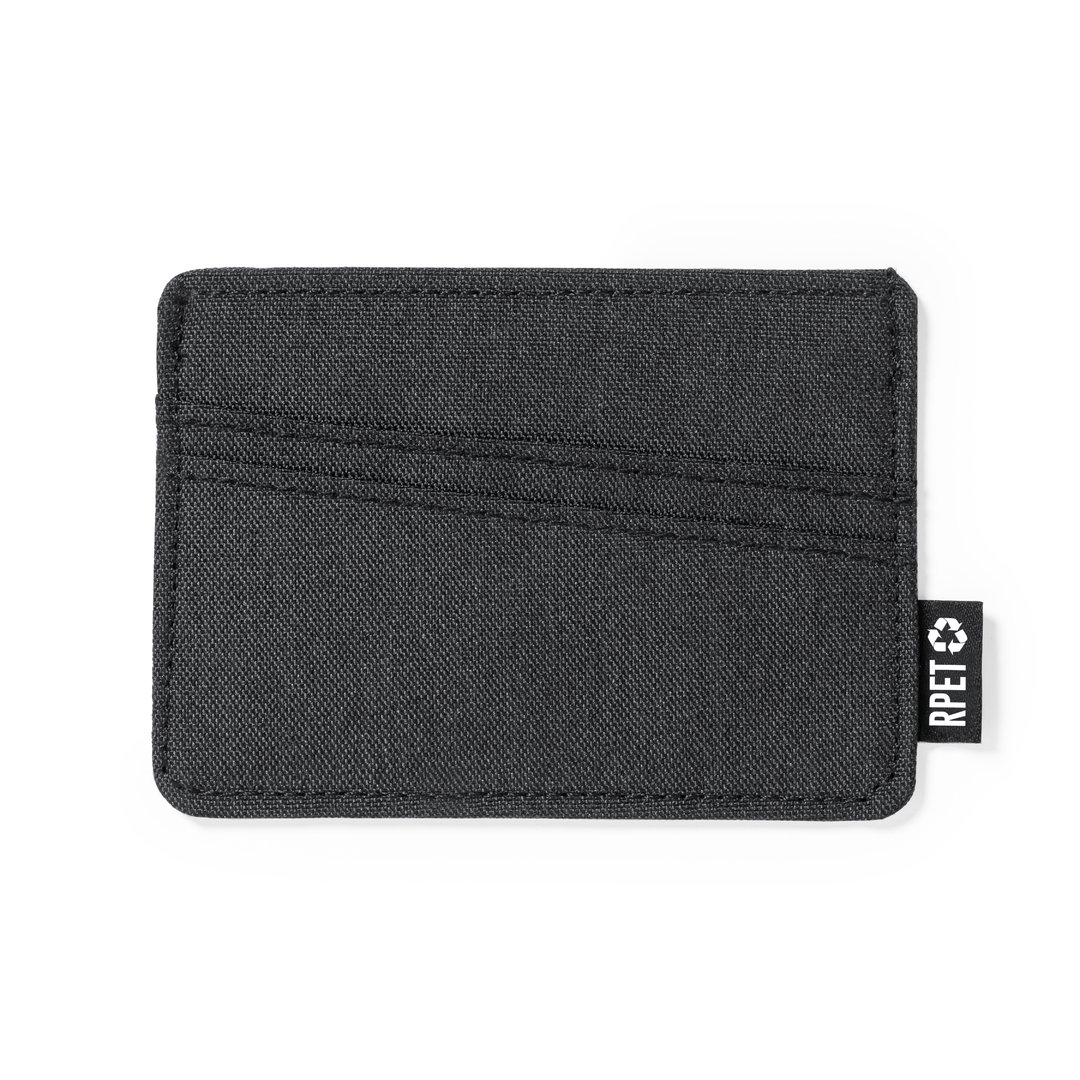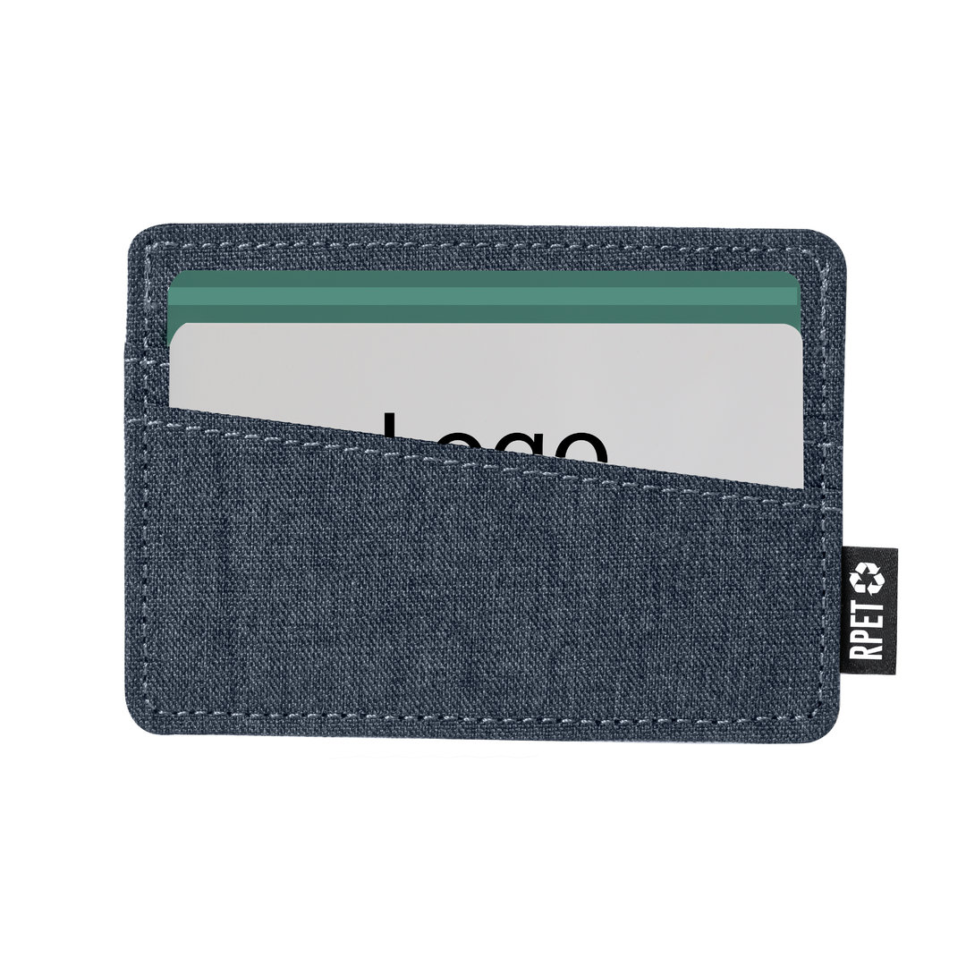 Elegante tarjetero fabricado en poliéster RPET 300D. Con 3 compartimentos independientes para tarjetas y distintivo RPET en la etiqueta exterior. El material RPET se elabora a partir de plástico reciclado, para así fomentar la reutilización de residuos plásticos y ayudar a la sostenibilidad del planeta.   3 Compartimentos   Poliéster RPET