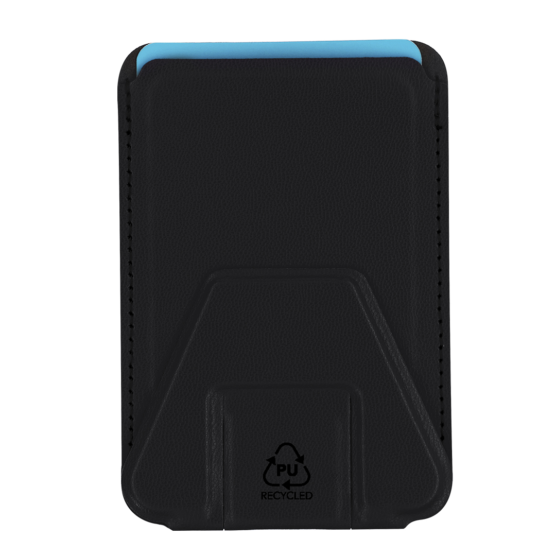 Funda tarjetero en PU Reciclado. Con soporte multifuncional que permite diversas posiciones. Con sistema de fijación adhesiva. Incluye distintivo PU reciclado.La PU Reciclado destaca por su resistencia y elasticidad. Este material reciclado y reciclable es una opción sostenible que rescata las fibras desechadas en los procesos de fabricación, minimizando así el desperdicio de material y contribuyendo a su vez a reducir el impacto ambiental, manteniendo a la vez sus propiedades originales. Adhesivo PU Reciclado