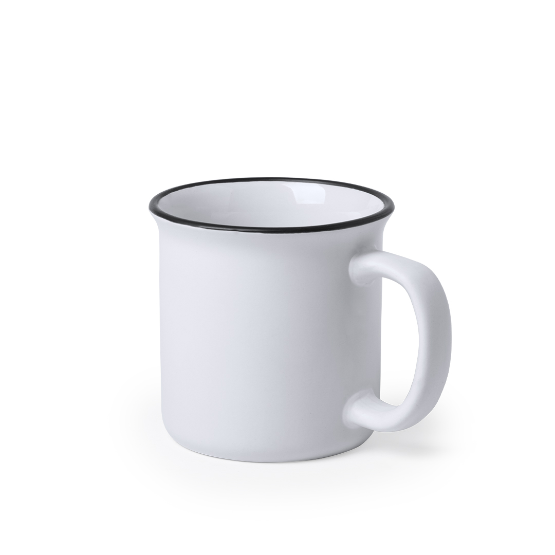 Taza de cerámica de 300ml de capacidad con diseño vintage. En sobrio diseño bicolor, con anilla en el borde. Presentada en caja individual.Disponible manual de instrucciones en español e inglés. 300 ml Cerámica