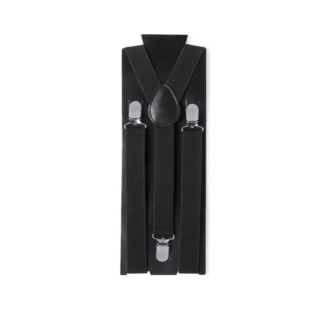 Tirántes elásticos de poliéster en sobrios colores con accesorios metálicos. Con refuerzo de polipiel en espalda a juego y presentados en original cartulina individual de color negro. Talla Única. Adulto Poliéster