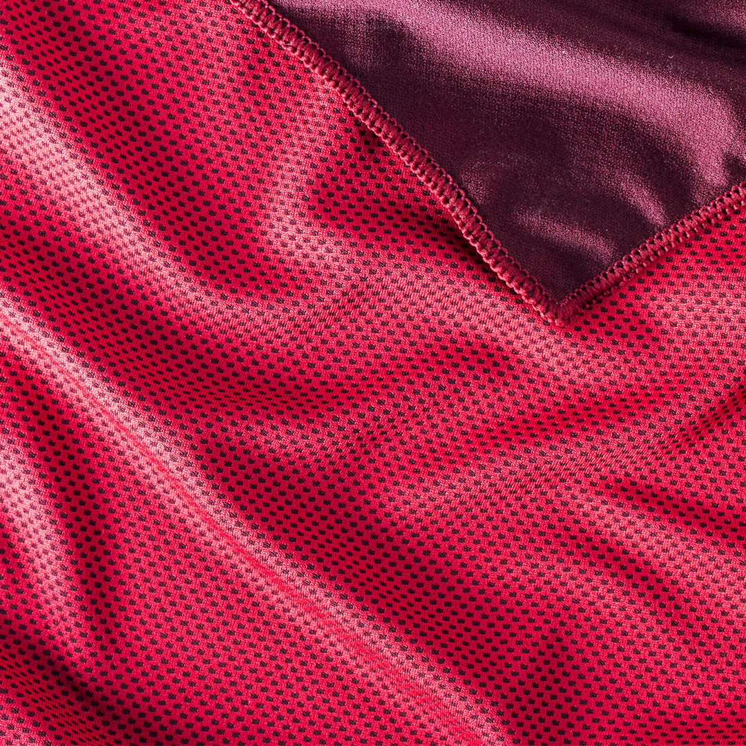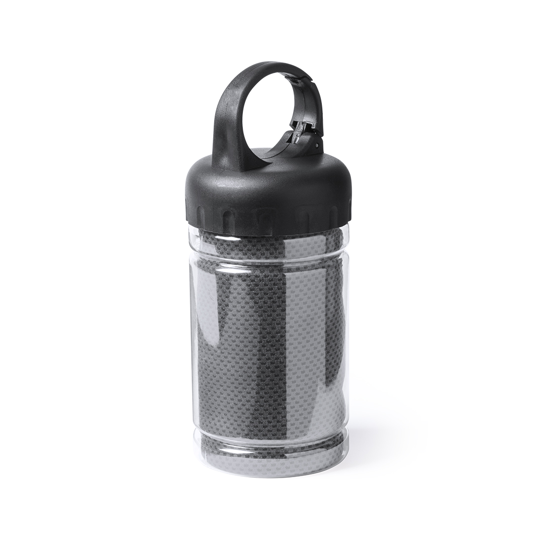 Toalla de 90x30cm en material refrigerante SoftCool Extreme con protección UV50. De 160g/m2 y presentada en estuche individual transparente con asa mosquetón de transporte integrada en tapa. Protección UV50 55% Nylon/ 45% Poliéster 160 g/ m2