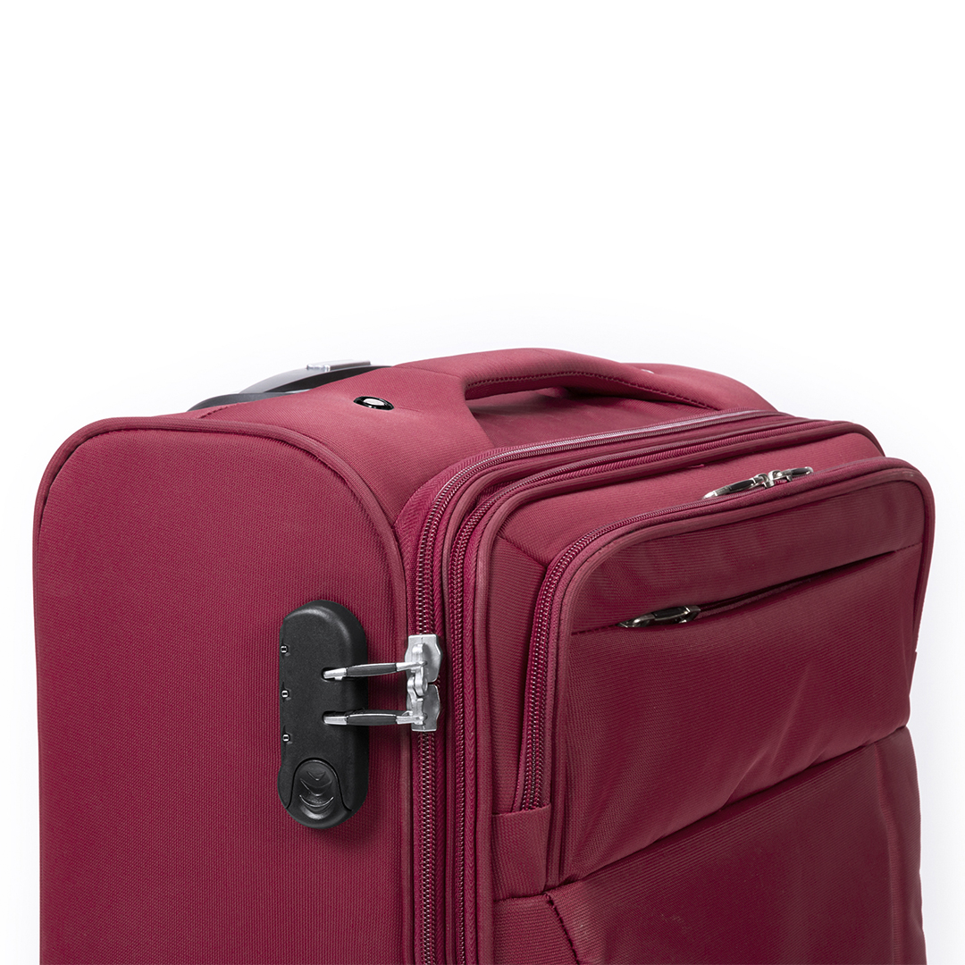 Trolley de negocios de apertura total con 4 ruedas telescópicas acabado en nylon. De sobrios colores, con asa exterior reforzada a juego y prácticos bolsillos en parte frontal. Con identificador, cierre de seguridad de combinación numérica y cremalleras a juego, incluye además compartimento interior acolchado para ordenador portátil de hasta 15 pulgadas y multitud de bolsillos interiores. 8 Ruedas Giratorias. Bolsillo Acolchado para Portátil. Cierre Seguridad Nylon