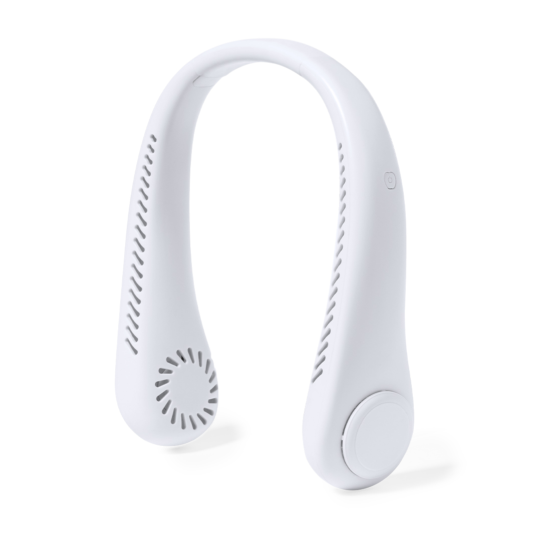 Práctico ventilador portátil fabricado en resistente ABS. Este elegante ventilador tiene un diseño en forma de collar para colocarlo alrededor del cuello, brindando una sensación refrescante. Ofrece tres posiciones de velocidad diferentes y es recargable mediante su batería de 800 mAh, cable Micro USB incluido. Presentado en caja de diseño kraft. 3 Posiciones. Batería 800 mAh